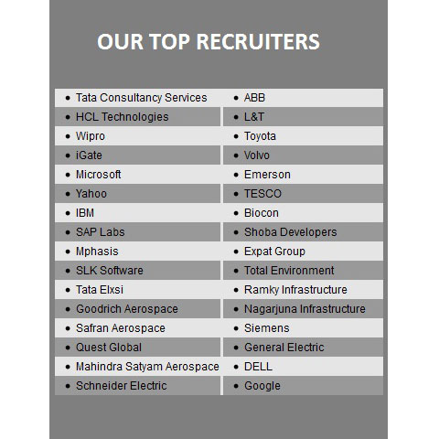 Over the last 5 years more than 200 companies have visited and recruited students from MVJCE. Some of our top recruiters: